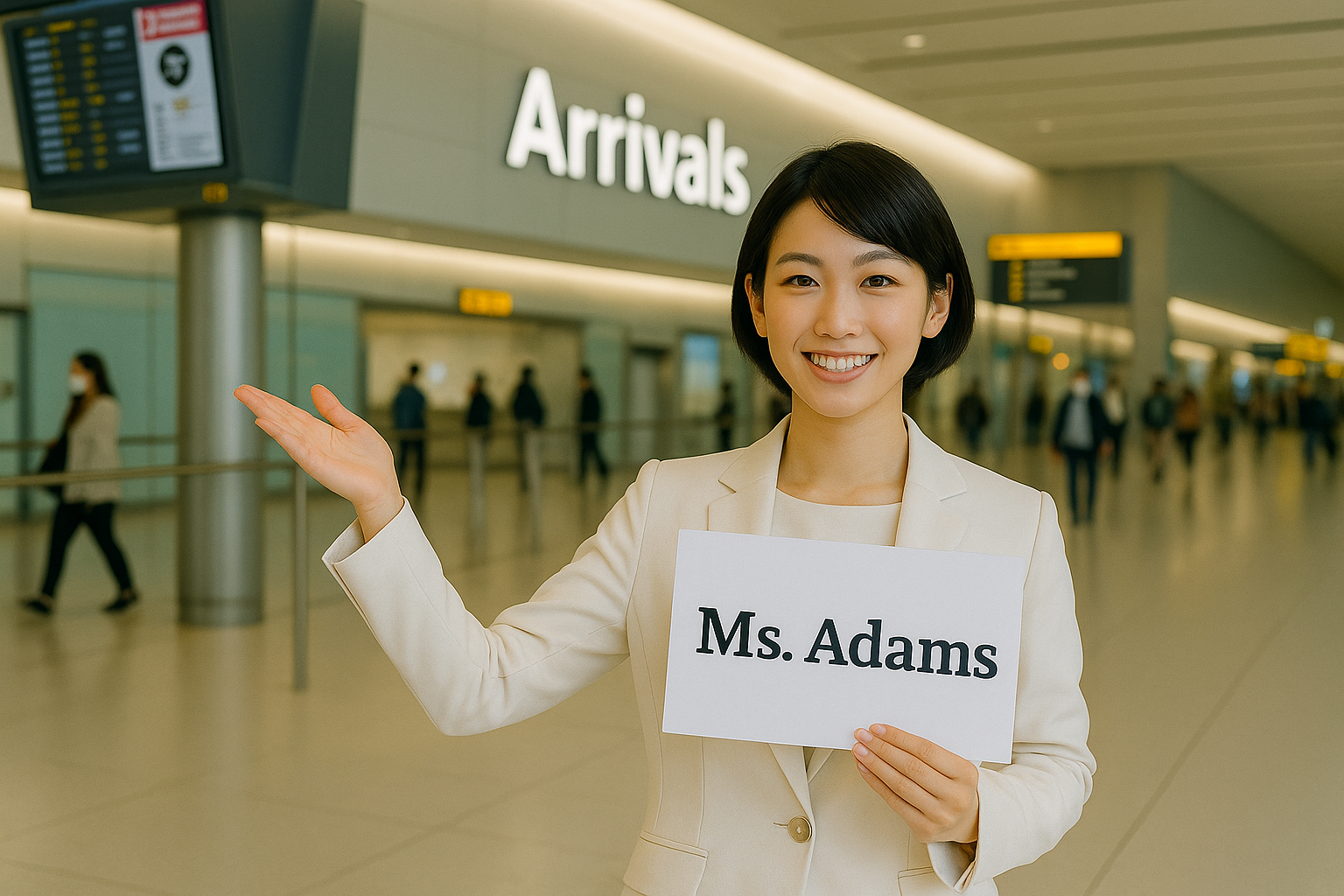 ・空港ロビーでのネームボードによるお迎え
