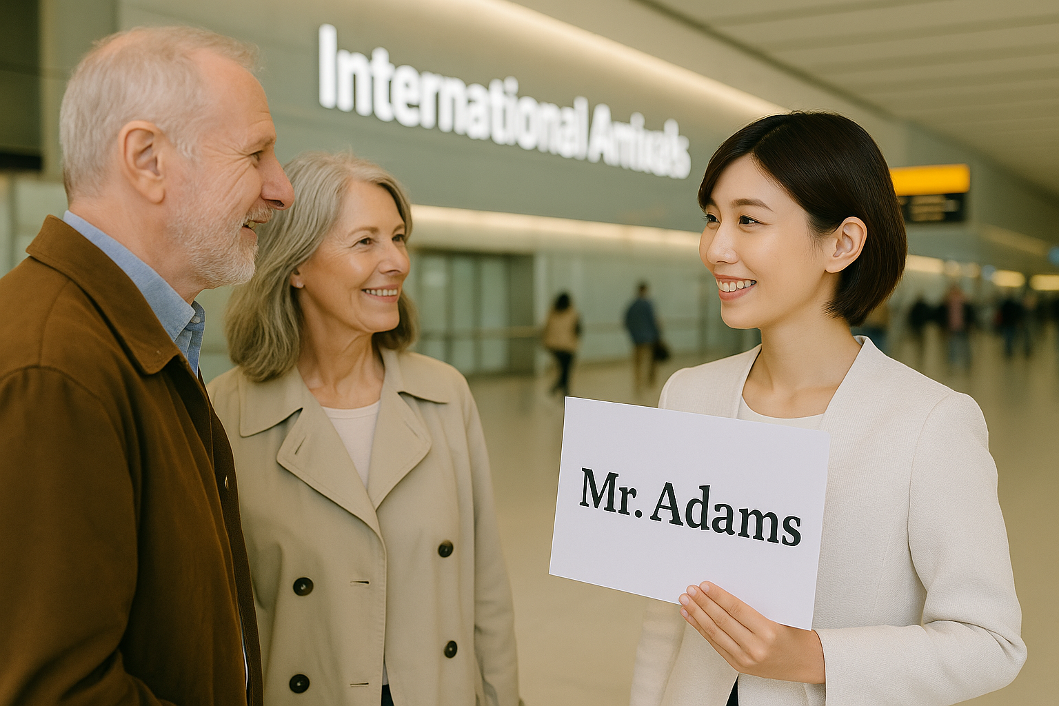 ・成田空港ロビーでのネームボードによるお迎え